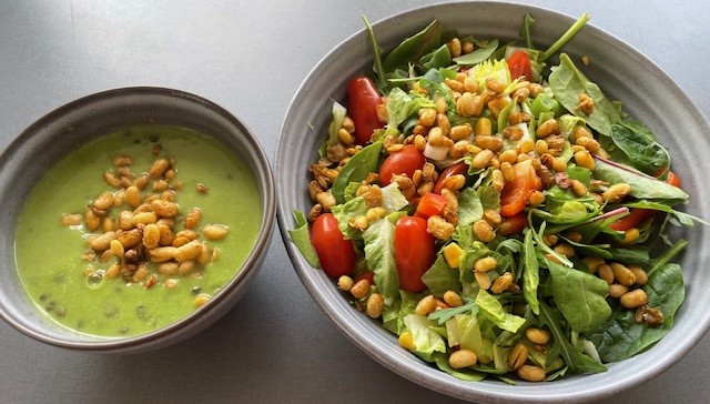 Soyabønner inneholder plantesteroler som etterligner østrogeneffekten i kroppen og kan derfor dempe plager man får i overgangsalderen. Det mest effektive er å spise hele soyabønner som er kokt. Edamamebønner finnes både fryst og på boks. Disse er baby-soyabønner og kan brukes, men de hvite har litt større effekt. De finnes ikke på boks i Norge, så man må koke de selv. Man kan bløtlegge og koke en stor batch som man fryser inn i ukesporsjoner. En super måte å tilberede de på er å riste dem i airfryer/ovn etter å ha smaksatt dem med soyasaus/coconutaminos og litt hvitløkspulver. Da får man deilige ristede soyabønner som kan brukes i salat eller som topping på supper og andre retter. Det er veldig enkelt å å spise en desiliter av disse, i tillegg til at de smaker godt.